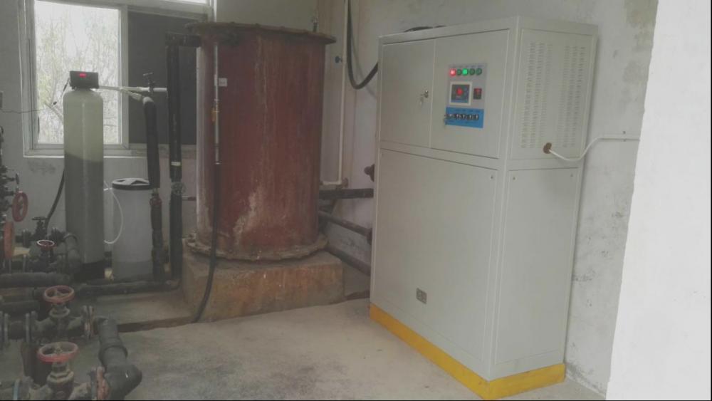 該項目位于寶雞市,為某水泥廠職工宿舍供暖選用一臺DRJ-120電熱水機組,無人值守全自動運行。
